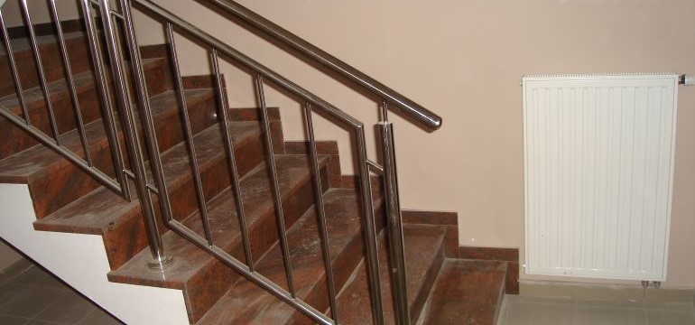 Inox ograde za stubišta u kojima su ispune u okviru koji se nalazi između rukohvata i stupova. Rukohvati i stupovi su okrugli profili promjera 40mm polirani ili 42.4mm mat/satinirani okvir je inox okrugli profil promjera 30mm polirani ili 25mm mat-satinirani. Ispune su okrugli inox profili i mogu biti promjera 12 ili 16 mm.