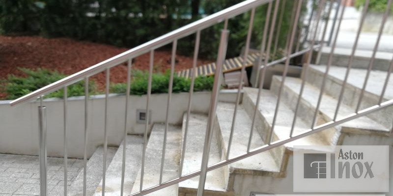 Inox ograda za stepenice / stubišta sa vertikalnim ispunama. Napravljena da traje. Ova inox ograda ima okrugle rukohvate i stupove jednakog promjera, 2 horizontale a između tih horizontala idu okomite ispune. Završna obrada Inox-a može biti polirano (sjaj) ili brušeno/satinirano (mat).